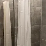 A separate toilet and a shower, along with a hair dryer and towels, are provided in the bathroom.